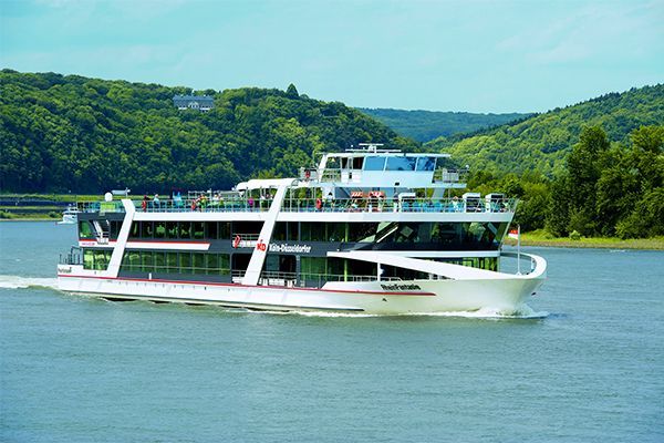 Puede disfrutar del impresionante panorama del Rin en un recorrido panorámico, un recorrido por el puerto, un viaje al romántico valle del Rin o incluso un evento nocturno en un barco.